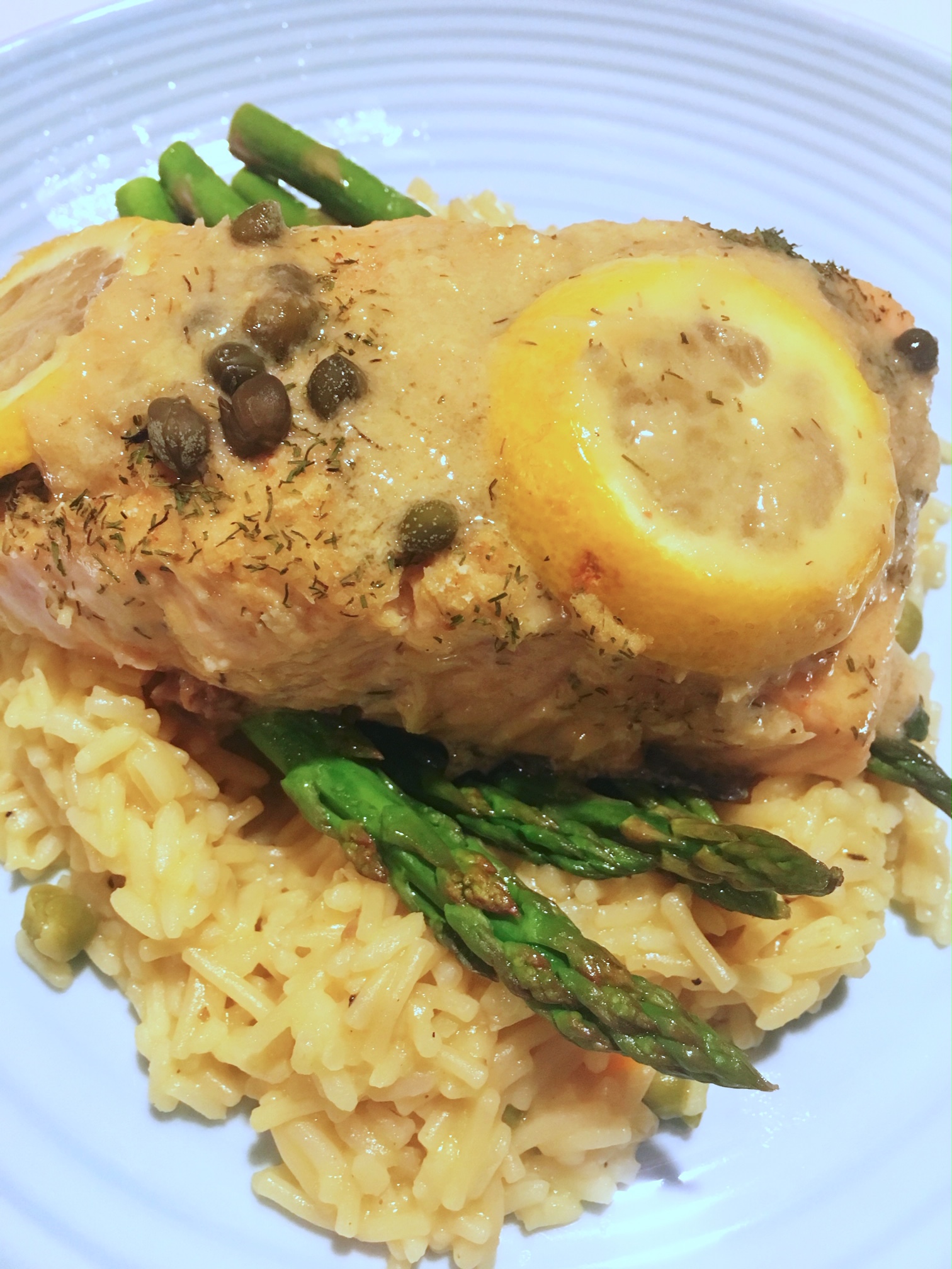 Portion your salmon and pour the juices over your dish generously. This goes well with any sides, but I paired it with steamed asparagus and Knorr Rice Sides.