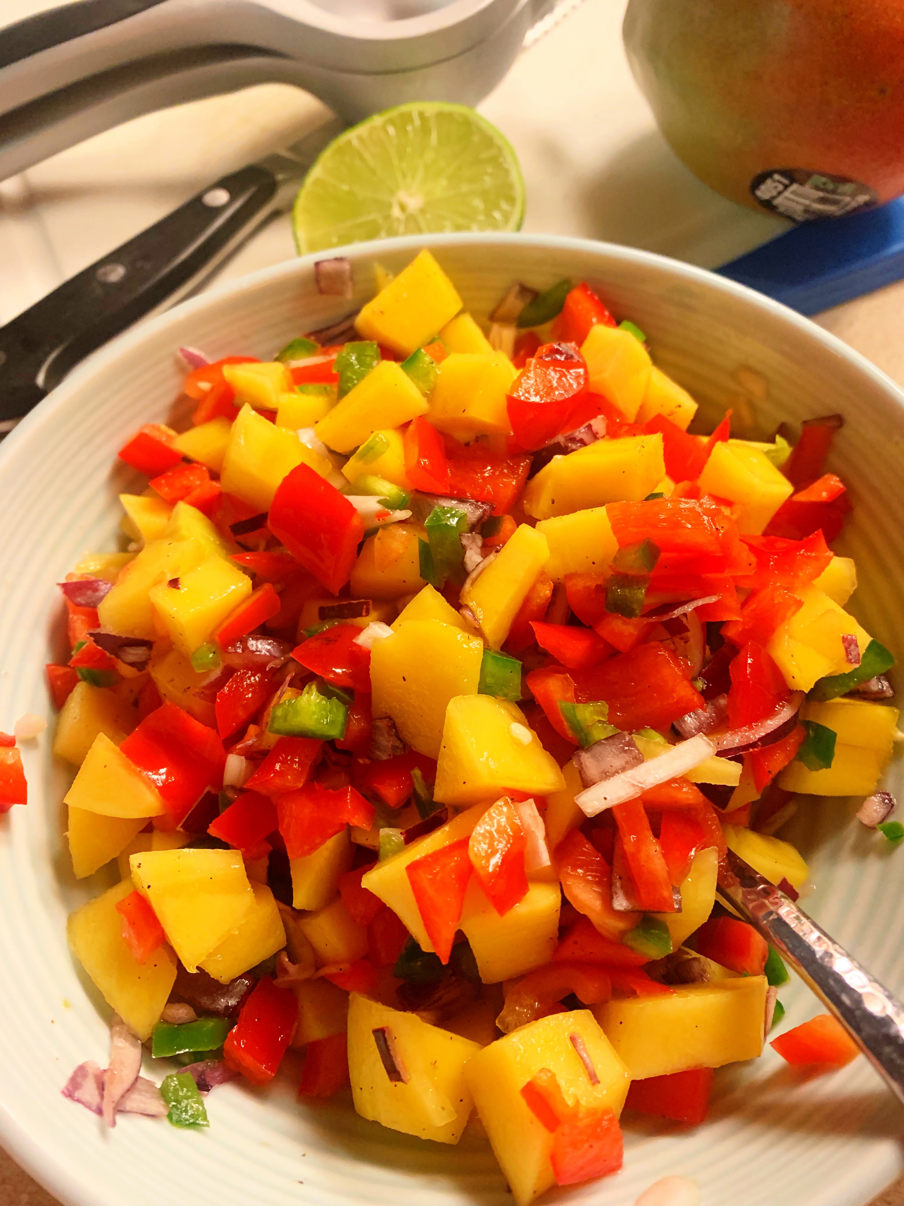- Serve with generous scoops of the mango salsa. I paired with brown rice and broccoli.