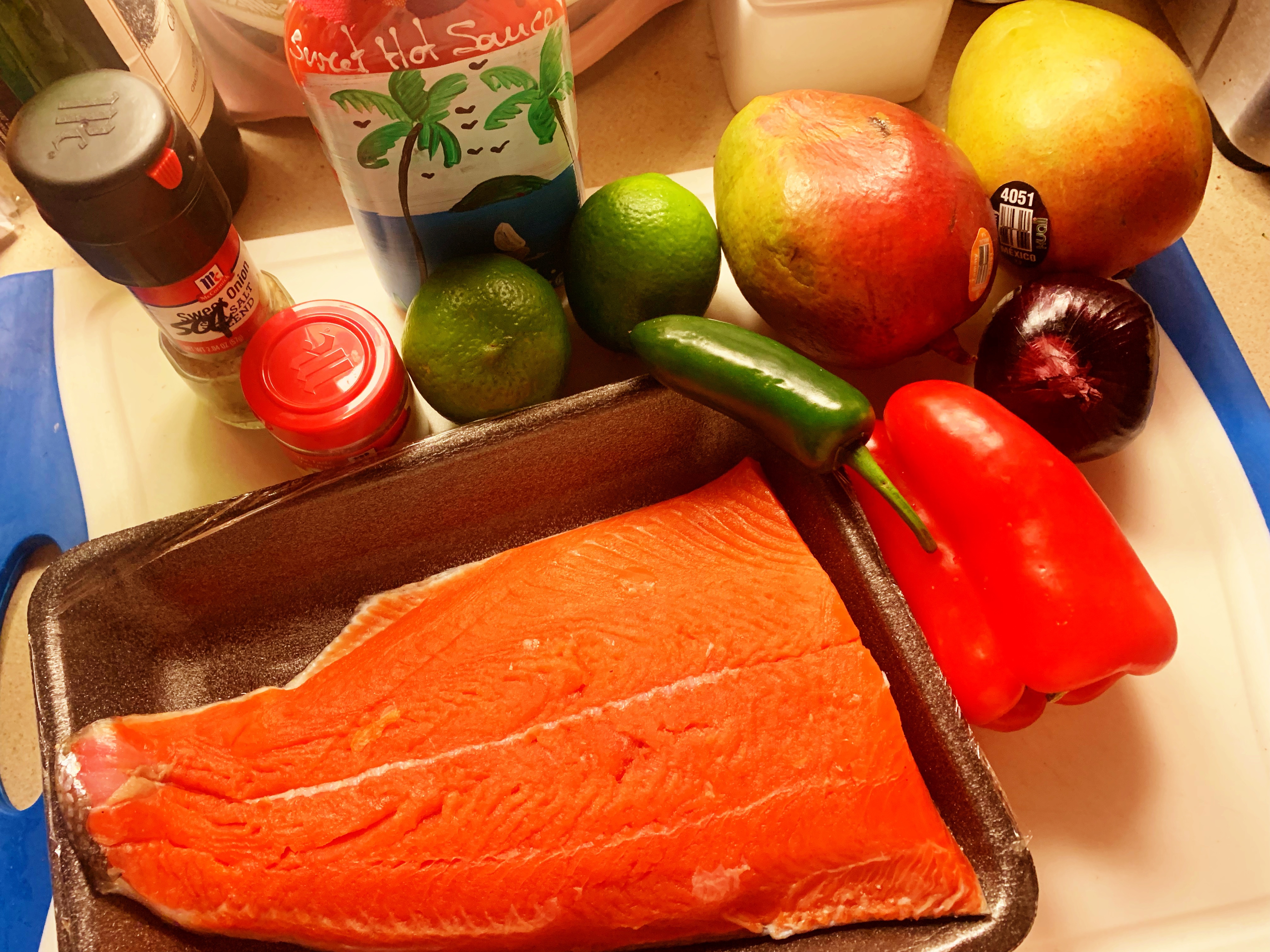 Having recently returned from St. Maarten, we have gotten used to eating a lot of fresh seafood prepared in FABULOUS ways. That coupled with yet another Lenten Friday, I came up with a fresh new presentation for our typical Salmon.