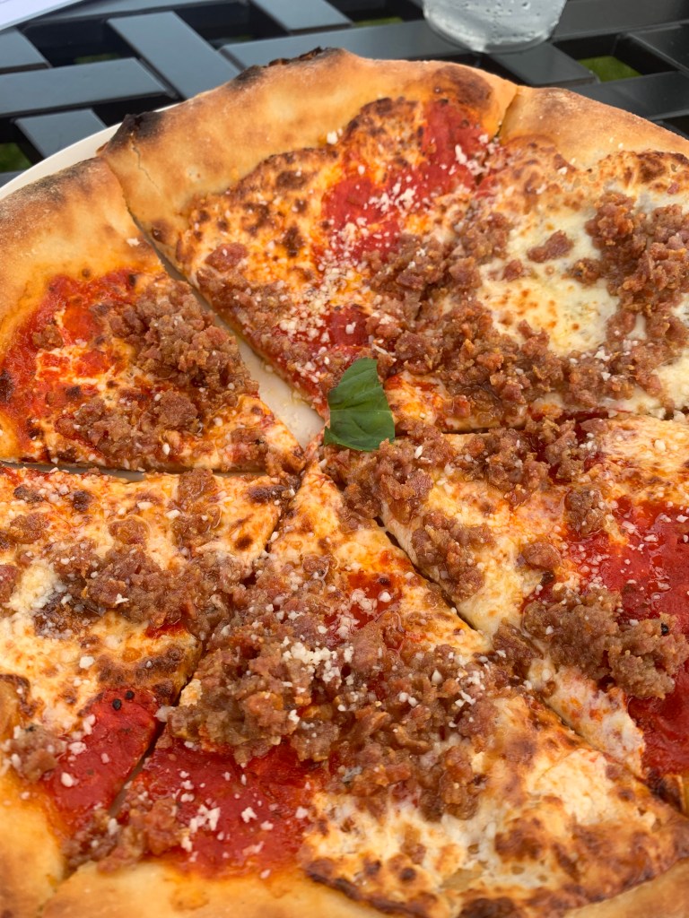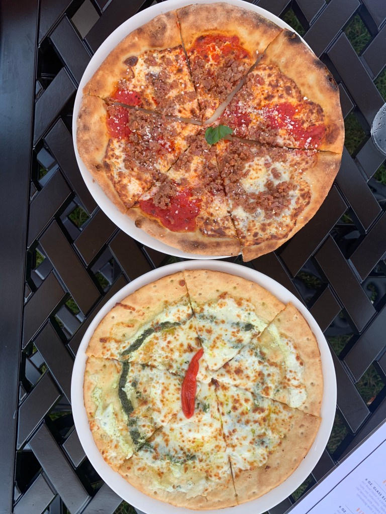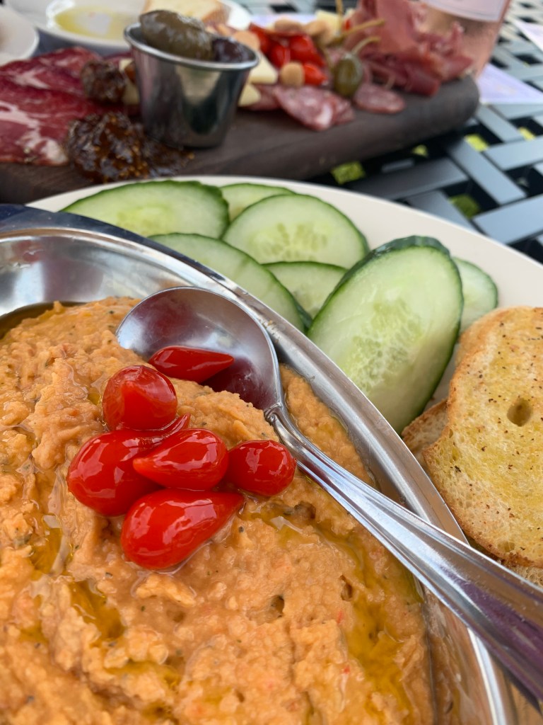 Any vineyard worth it’s grapes knows that in order to keep its patrons happy (and less inebriated), you have got to serve up some delicious snacks that pair well with their drinks. Oh boy, does Del Vino deliver! Their tapas menu came through in a BIG WAY…18 people spending 6 hours drinking wine and beer need snacks!! We tried I think a little bit of everything, but the pizzas and the pretzels were the biggest hits. Personal sized pizzas in either classic Margherita or Cauliflower style could have any combination of toppings including sausage, roasted red peppers, arugula, or prosciutto. The pretzels were HUGE and came with spicy mustard and honey mustard dipping sauces. We also tried the Meat and Cheese board, Hummus and Crostini platter, Mozzarella, Tomato, and Basil plate, Shrimp Cocktail, and Polpetta….everything was excellent and all our plates were cleared!