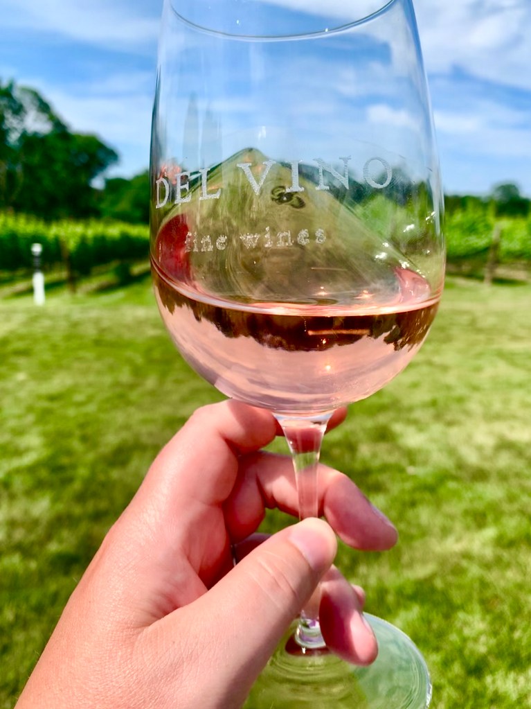 Enter the (words cannot actually capture how beautiful) Del Vino Vineyards in Northport. Formerly the site of an orchard, the families that own the vineyard have been growing white wine grapes onsite since 2012!! And after years of struggling through Northport and TOH red tape, their tasting room finally opened last year in November….and I’ve been aching to visit ever since. Naturally, seeing as prior to their opening, the next closest vineyards were Whisper Vineyard and Harmony Vineyard in St. James, there has been a mad rush to visit this local haven, and quite regularly Del Vino closes it’s doors (and parking lot) to visitors once it reaches capacity. But don’t let that deter you! Reservations are taken for parties of 6-14 in the indoor tasting room, and the patio outside has probably about 35 or so tables that can set up to 12 people! Worried about not getting a space, just get there early like we did this past weekend when they open at noon…we were able to secure two large tables to fit our group of 18. Their website states that tables are given a 2-hour time frame before being turned over, but in our case, either there wasn’t a wait, or they just enjoyed us, because we spent almost 6 hours at our tables!