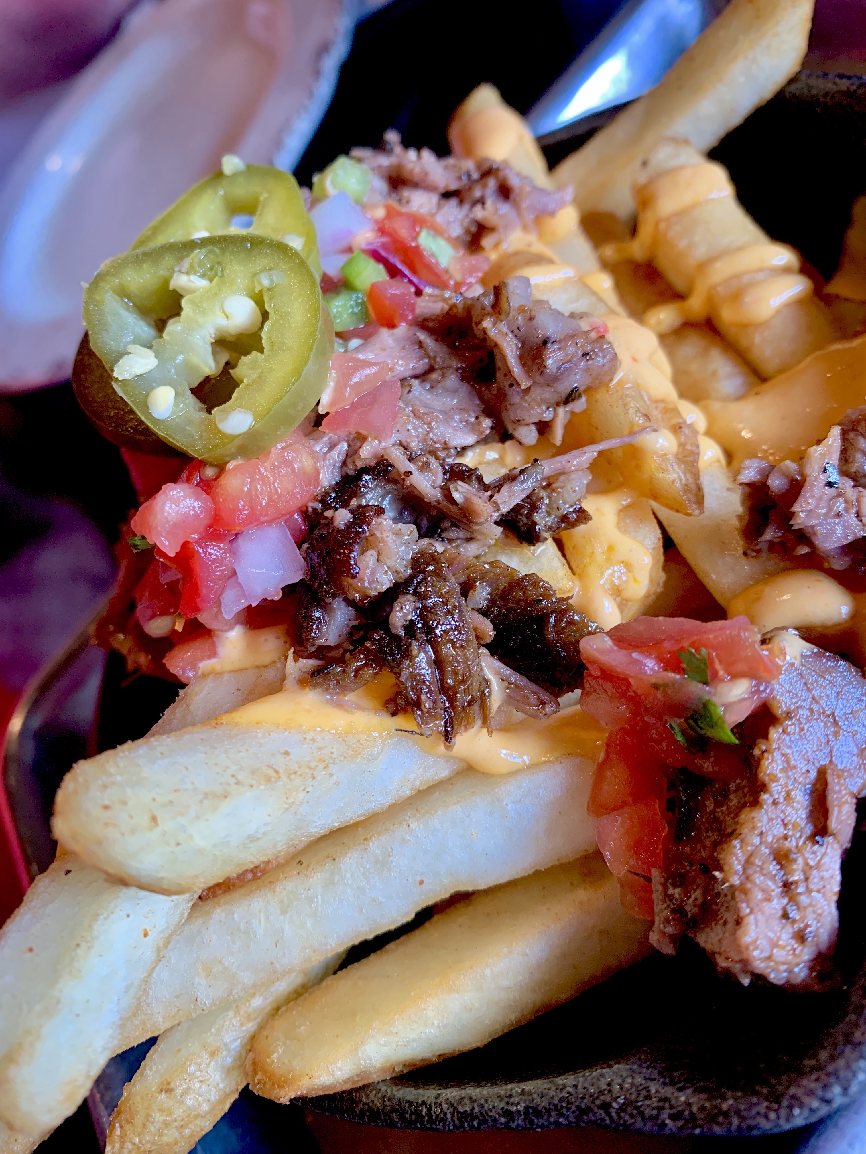 The wings…ohhhh myyyy goddd the WINGS! I love spicy, but these are not your typical “buffalo” wings; they have a juicy adobo sauce that is so flavorful, and perfect even for heat haters! Also they are served with a delicious avocado ranch dipping sauce….you may want to ask for TWO (wink wink). Another tasty option is the loaded fries skillet; an Americanized version of nachos? Picture all your favorite toppings on fries instead of chips…yeah you want it right?