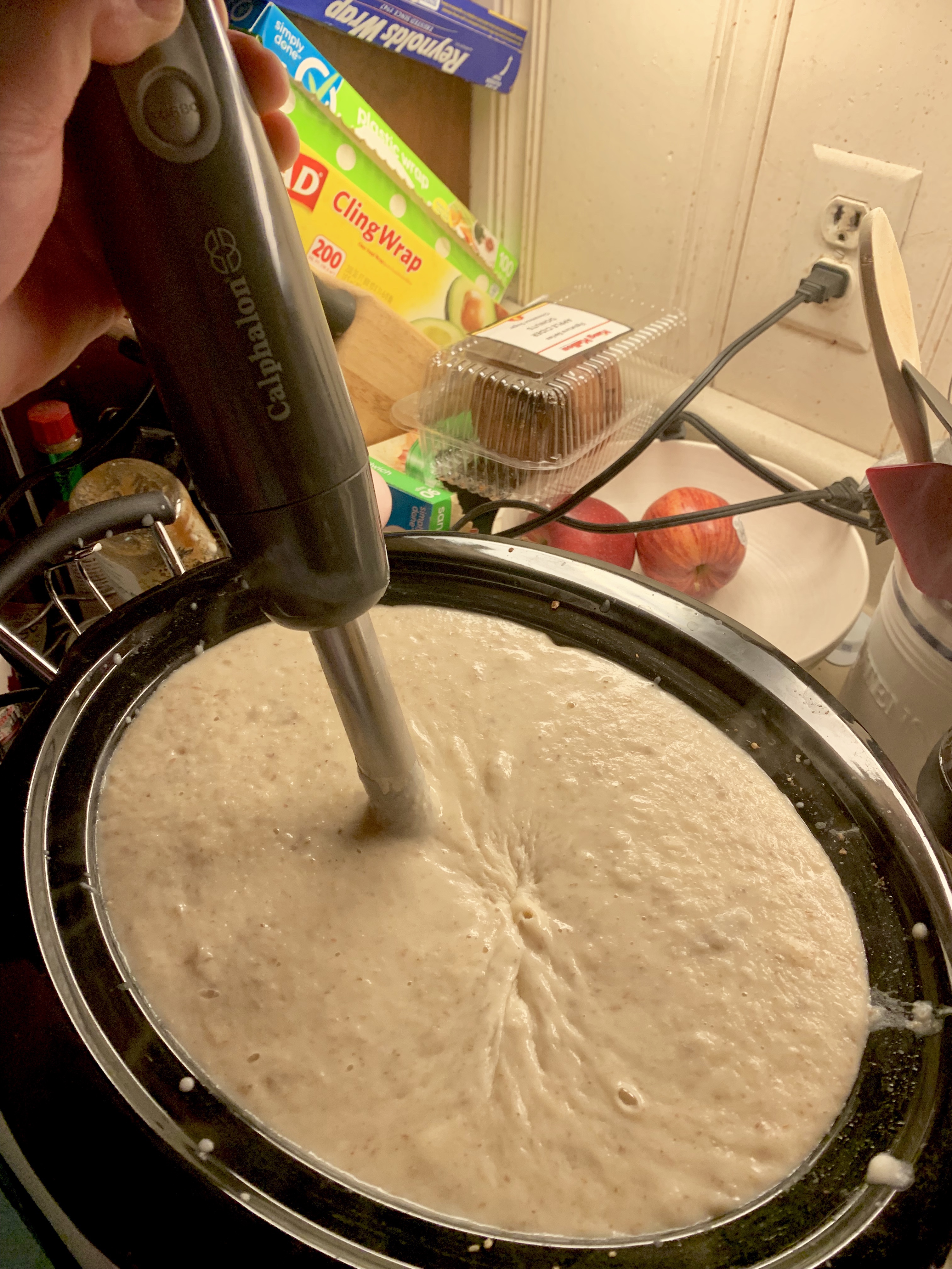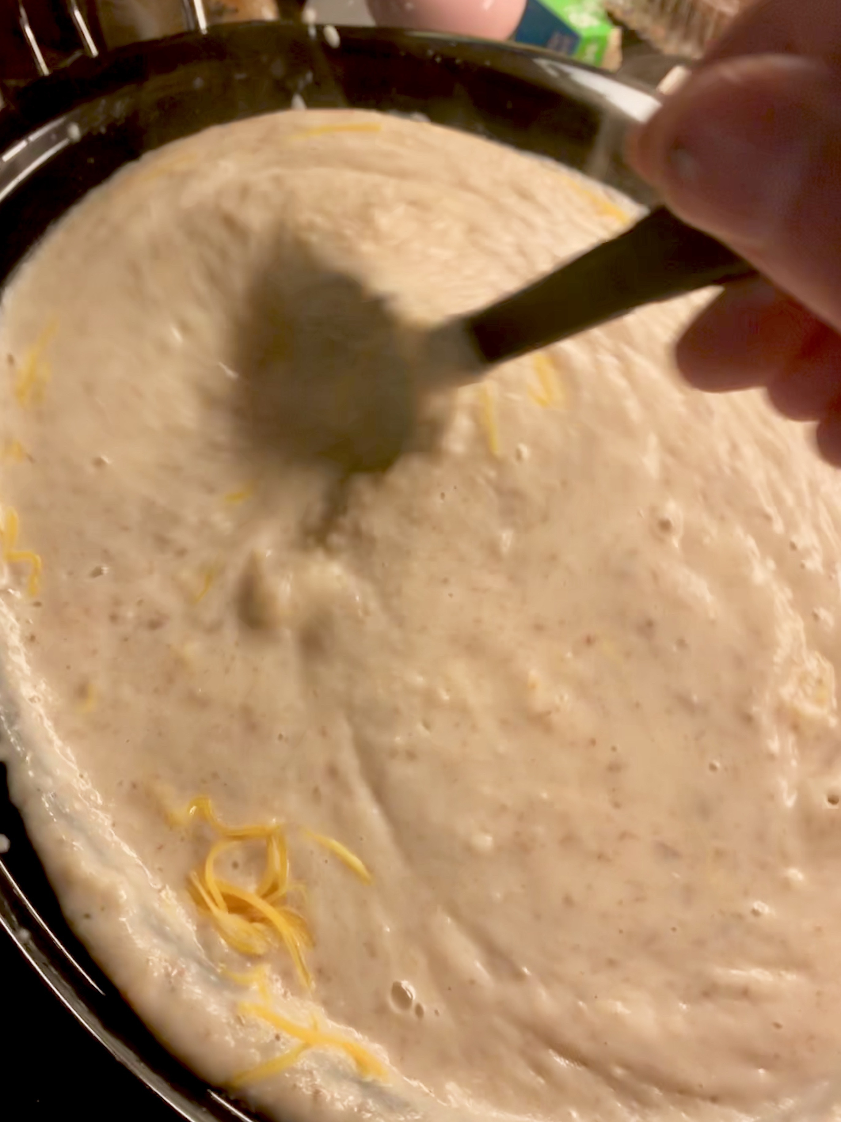 - Add the softened cream cheese and puree soup with an immersion blender until the cheese is incorporated and about half the soup is blended. Since there’s little to no room in the pot, I like to take out about HALF of the “soup” and blend it in another pot….that way I have less mess to clean up off my counter.