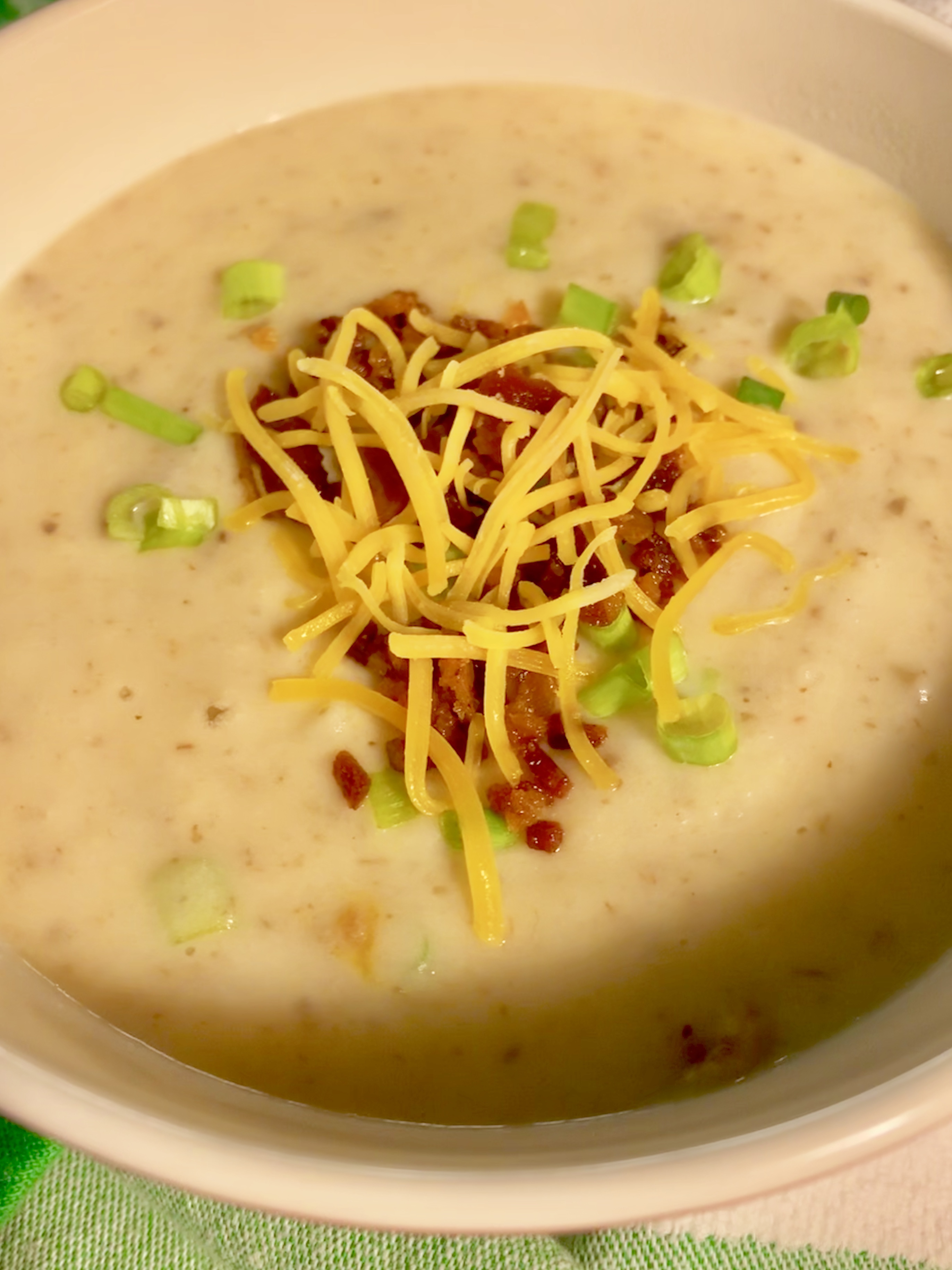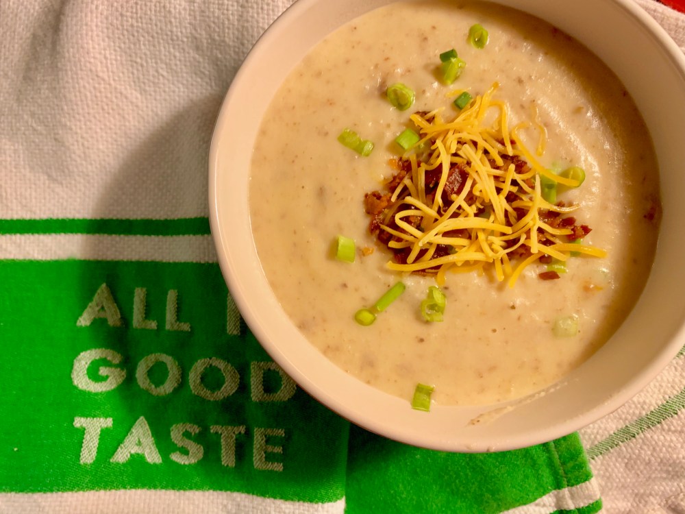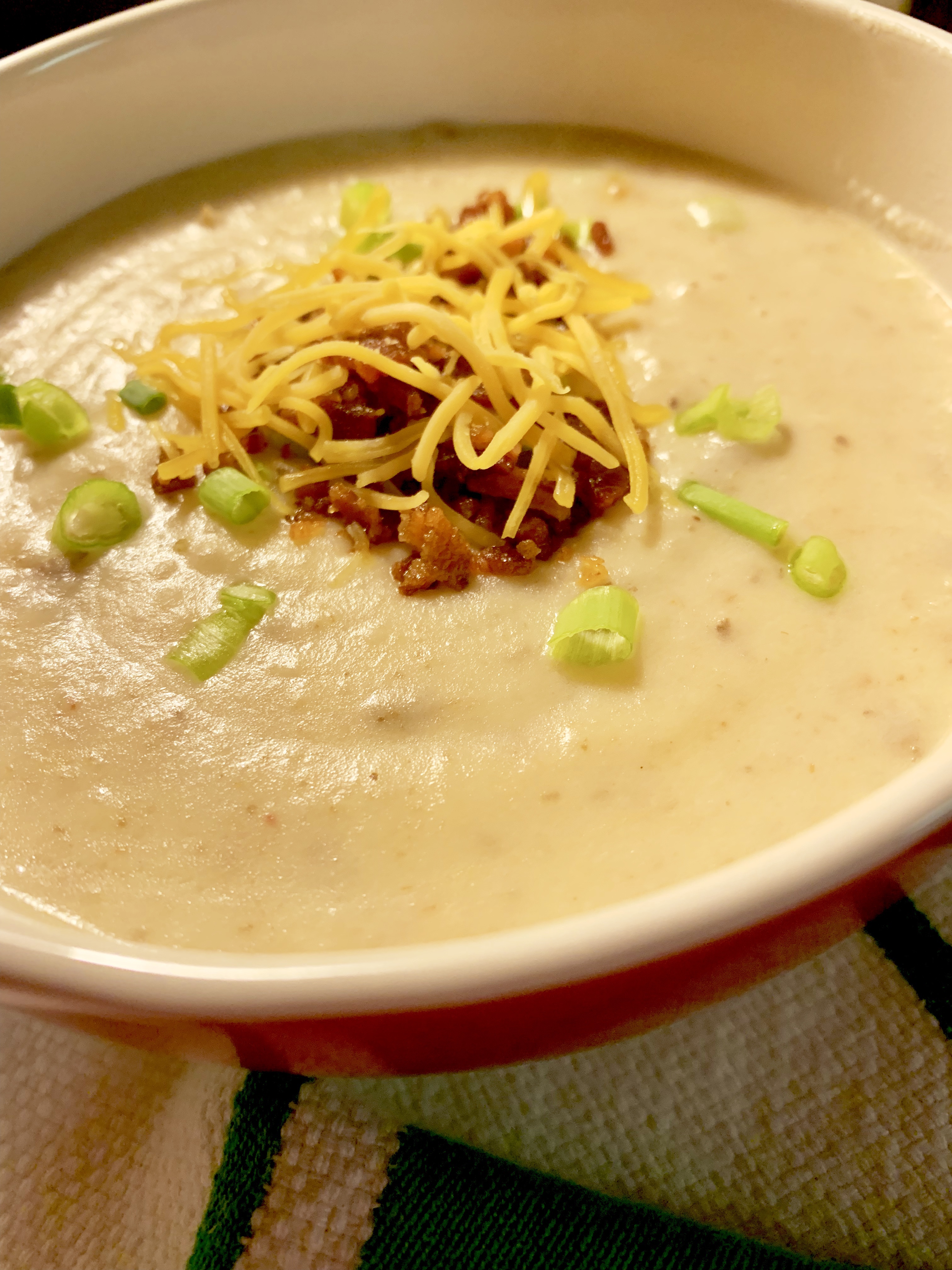 By now, you know know my stance on leaving the house for work and letting my trusty crock pot make me look like a champ at dinner…I’m all for it! This one literally took me 17 minutes to throw together this morning before jumping in the shower and heading out for another day of bliss at the office (HA). So yes, there’s some cutting involved. And Yes, there is some work to be done when you get home, but overall, you will be delighted with this tasty loaded baked potato soup….not to mention warmed from within, which, now that the temps are hanging out in the 50’s and 60’s, is a nice feeling.