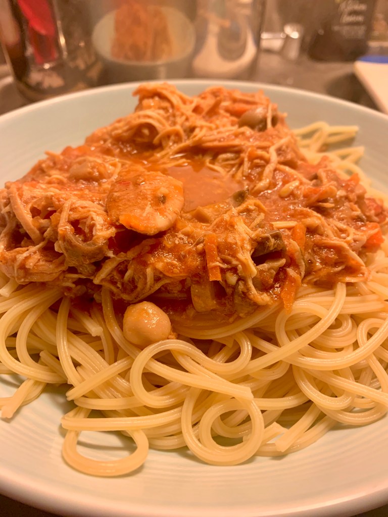 - Serve over your pasta or rice, and be sure to wear your napkin around your neck, this is a saucy one!
