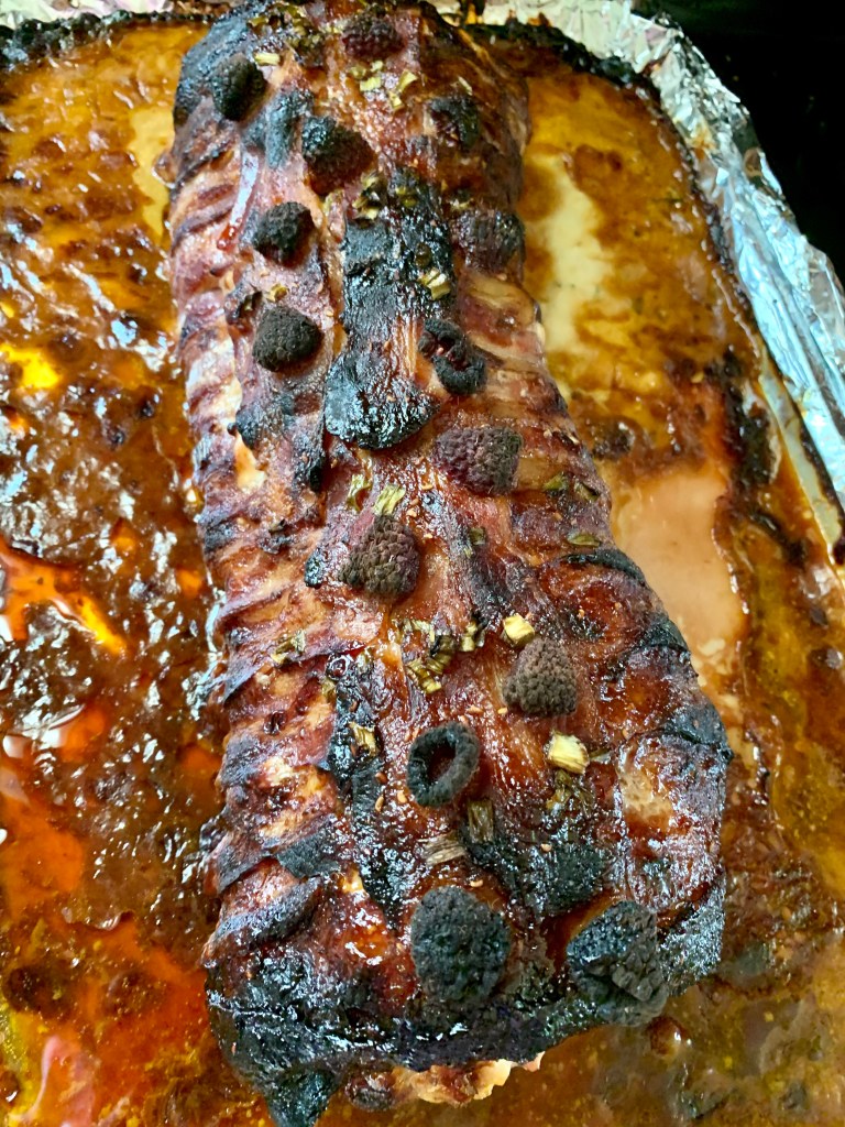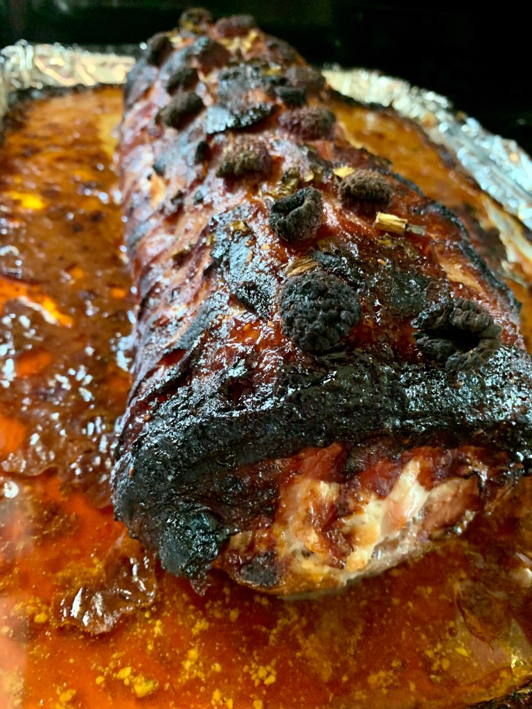 Ok so for my photos, you’re seeing a 6.75 pound pork loin to feed 7 because Easter which cooked for 2.5 hours (still uncovered in the last 30 mins). The recipe with the listed measurements is for “personal” and everyday eating.