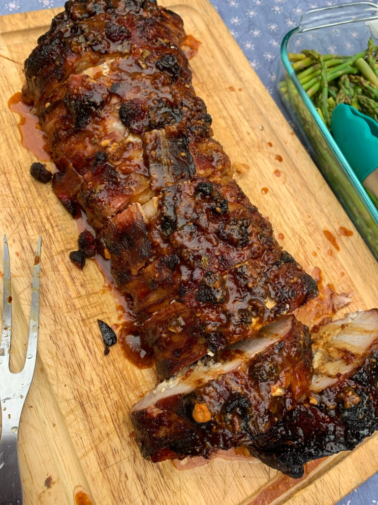 So this Lockdown Easter called for something special to liven things up; I thought why not bacon wrapped pork? And why not stuff it with cream cheese? And because it’s Spring, use fruit? All good things, all good things…and they came together to create a GREAT thing. This recipe is perfect for any special occasion and easy enough for a random Tuesday.