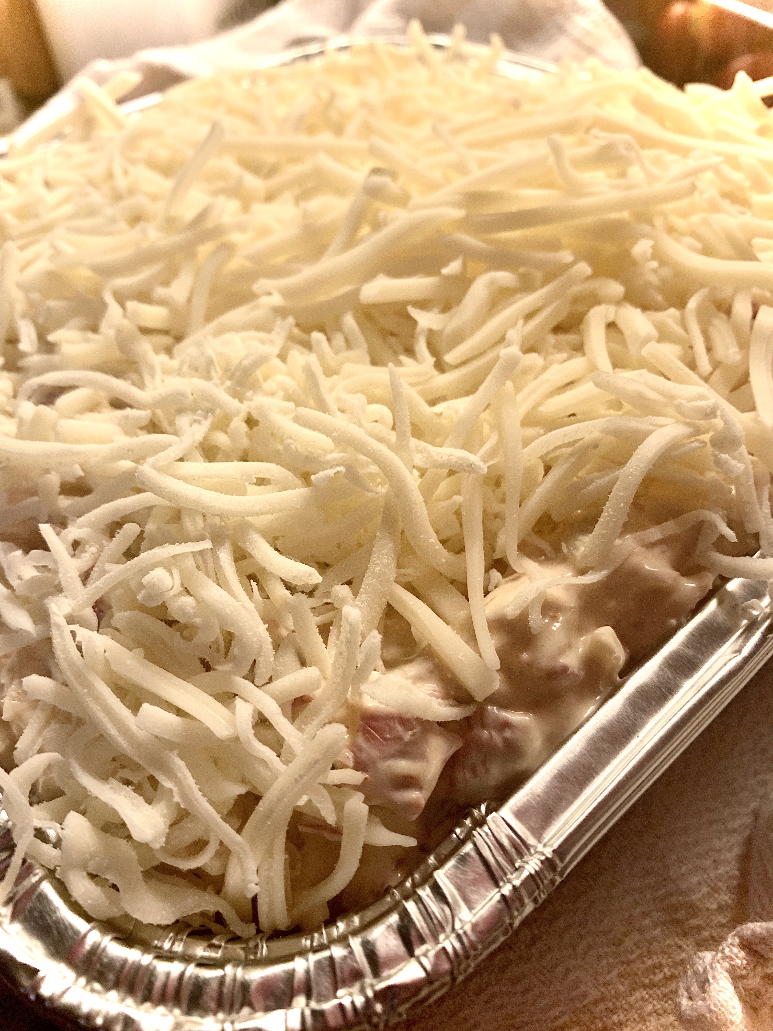 - Spread evenly in dish. Sprinkle the top with remaining cheese.