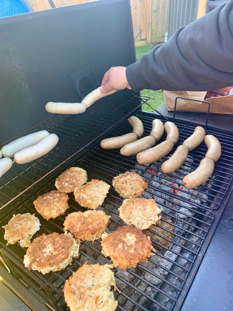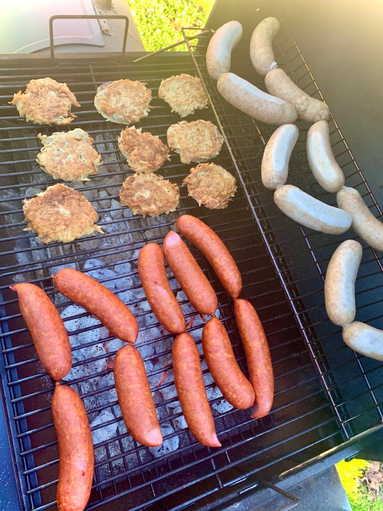 Let’s talk about the traditional sausages you’d expect to get at an Oktoberfest celebration, these Wursts are the Best! And if you’re looking for them on Long Island, I’m lucky enough to be close to one specialty store with great wurst! The Forest Pork Store in Huntington has probably all the sausages you’d be wanting, and maybe even some you’d never heard of before. They also carry a ton of German and other European specialty items that you’d be hard pressed to find without taking a trip to the fatherland. We got Bratwurst (pork), Weisswurst (silky veal sausauge), Krainerwurst (pork and beef combo), and Kielbasa. YUMM!! The 3 sausages got parboiled in beer, then finished off on the grill, and the Kielbasa went straight to the grill. Now whether you serve them up over a bed of Sauerkraut, on buns, over Spaetzle (traditional German egg noodles), you have to have some REALLY good mustards! Loewensenf is a great one, Inglehoffer stone ground is my favorite, Emeril’s Kicked Up Horseradish is also a fun variety with a little something extra!